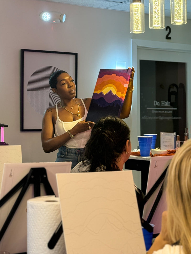 We host elevated sip & paint experiences desifned for women who love a good glass of wine, a chic atmosphere, and a little artistic adventure. From luxe setups to unique touches like our signature scent bar, every event is crafted to inspire, indulge, and leave you with more than just a painting--you'll take home a memory.